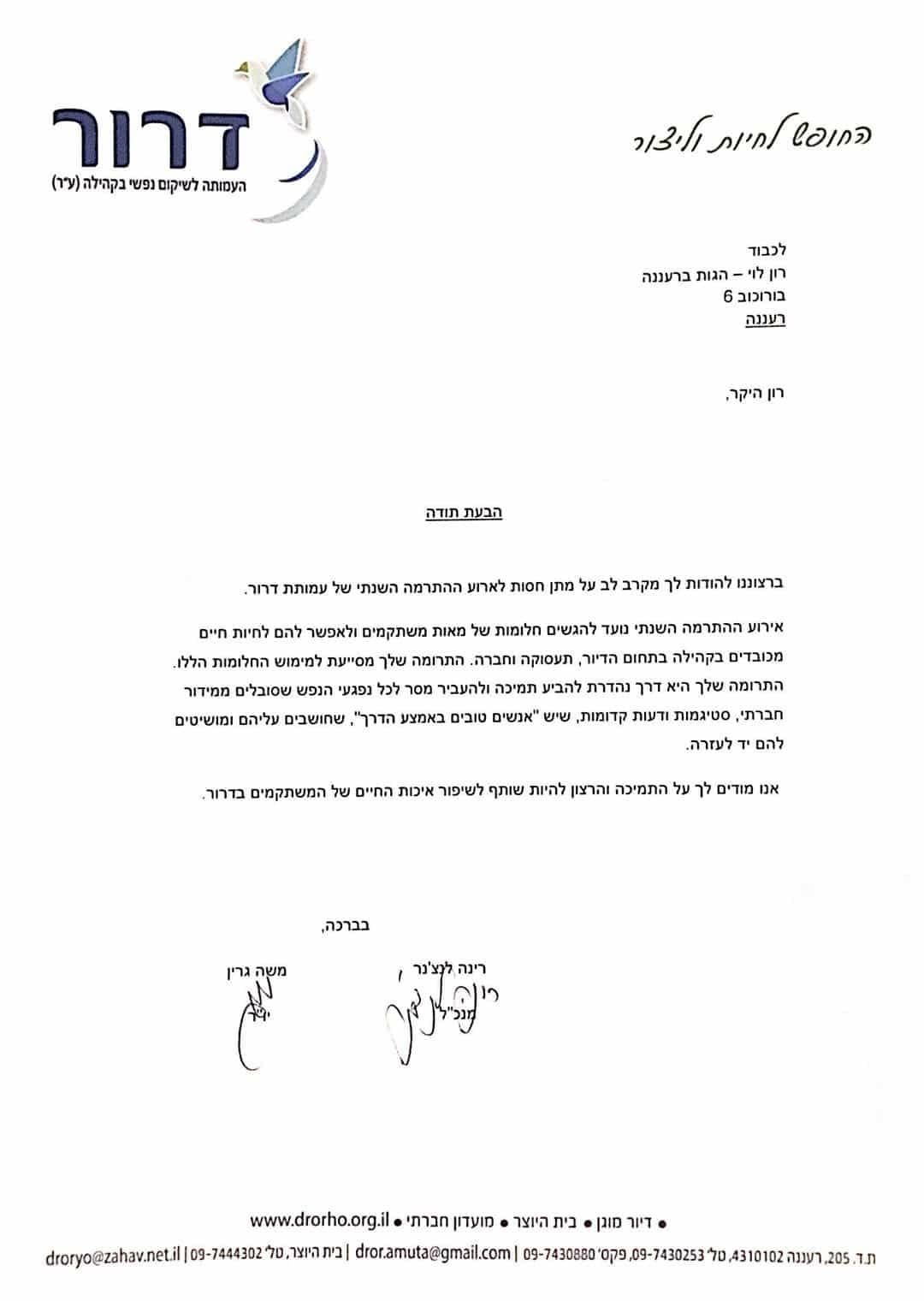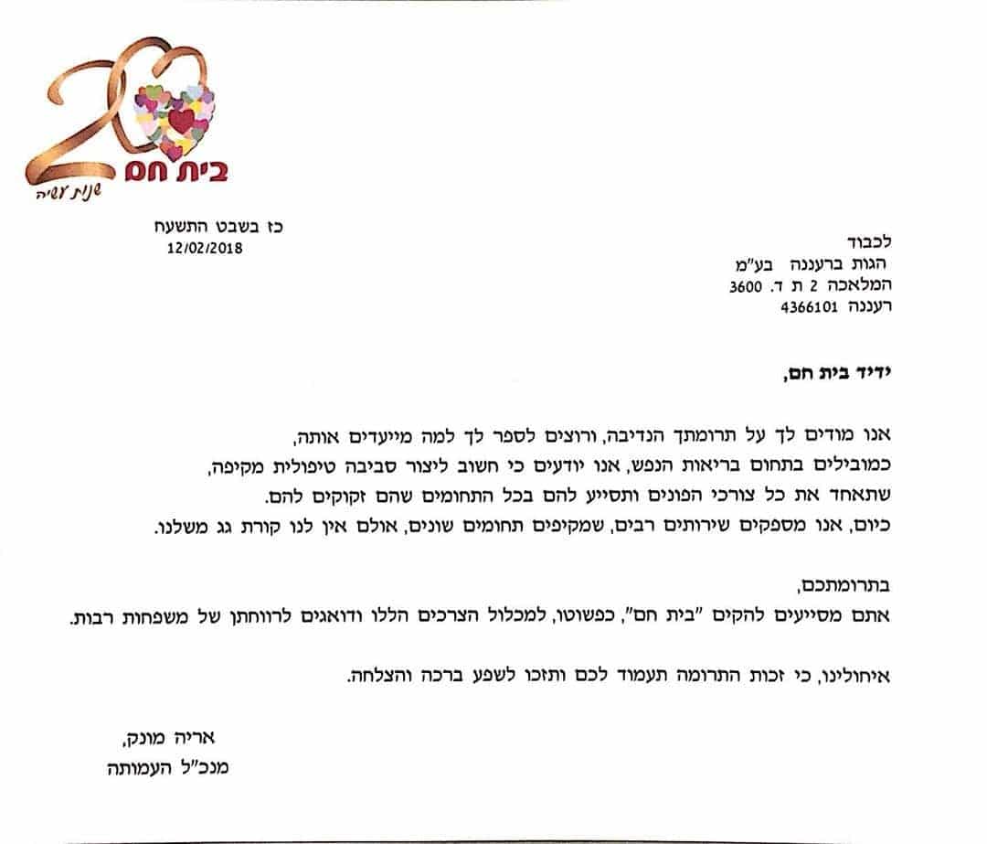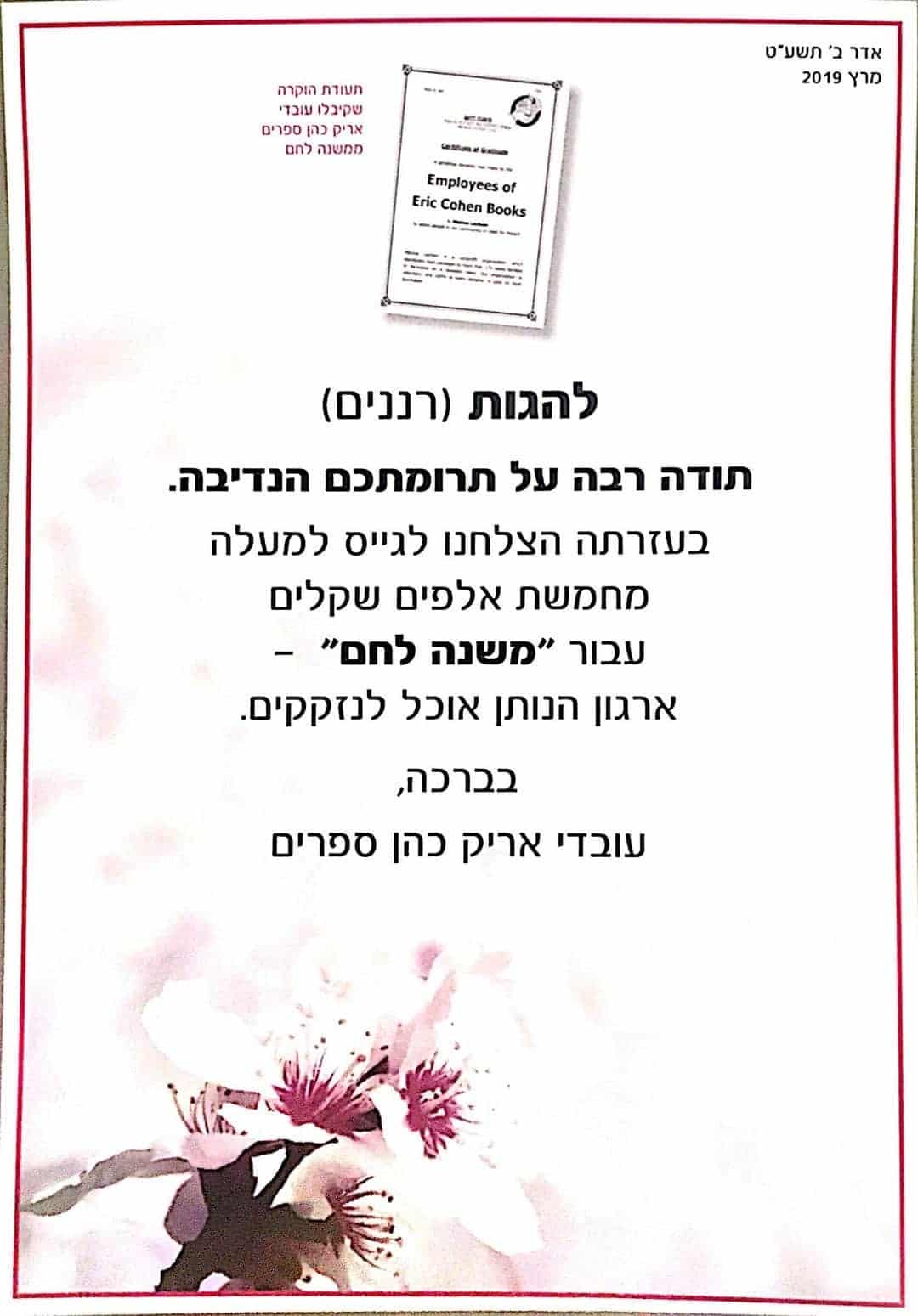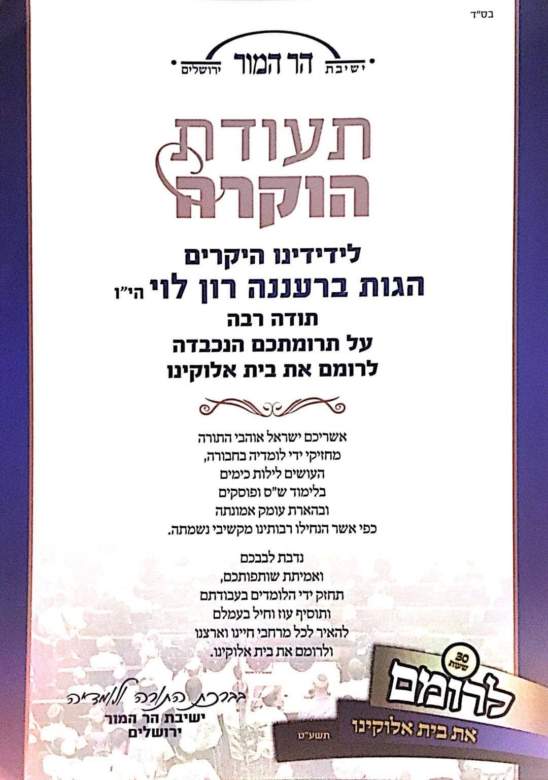 הגמ"ח שנתרם לעילוי נשמת יוסף לוי ז"ל (אביו של רון לוי – הבעלים של הגות), לעילוי ניסן לוי ז"ל (אביה של איריס לוי – הבעלים של הגות) ולעילוי נשמת אסתר חנה ויוסף מנחם בורנשטין.
