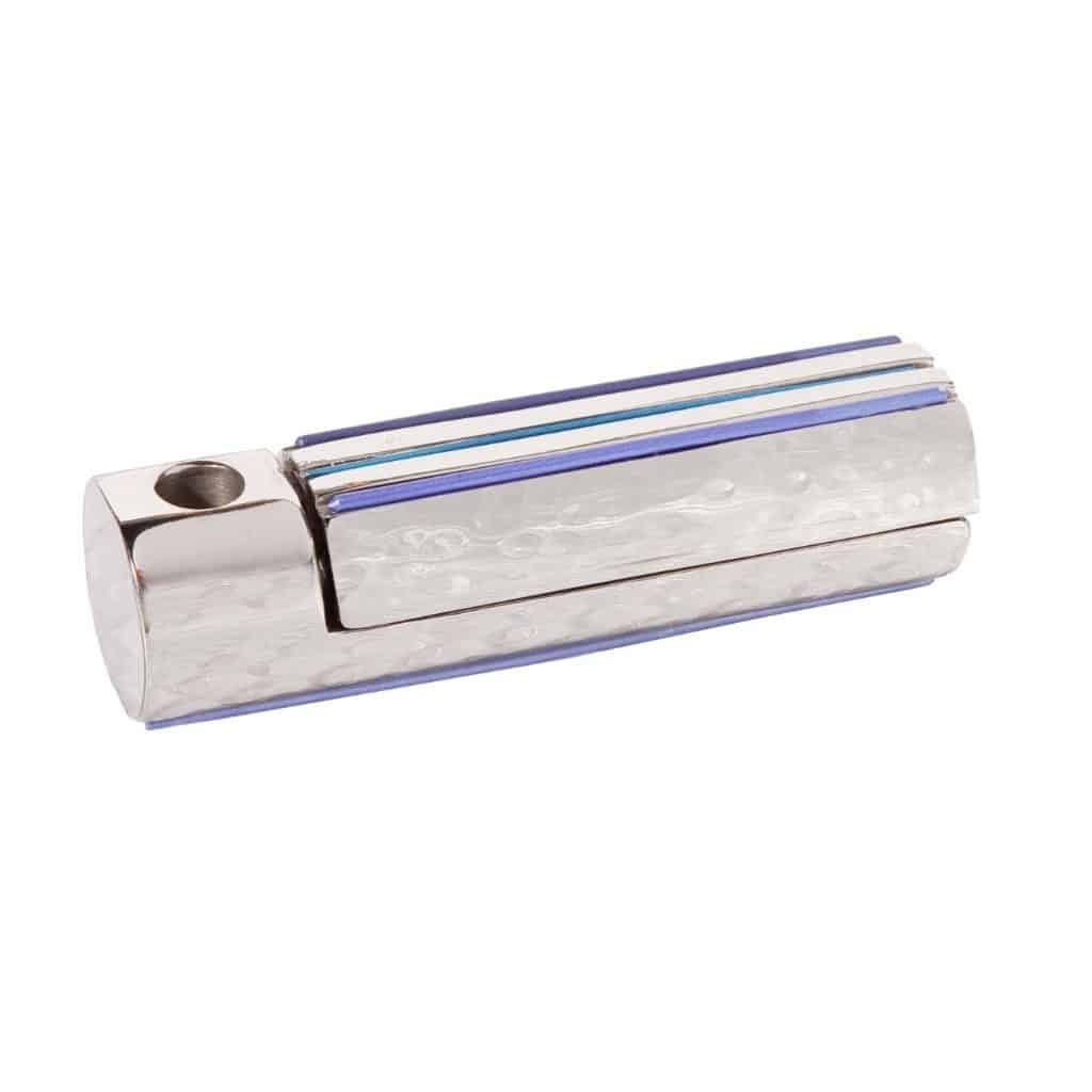 חנוכייה מעוצבת בצורה עדינה אשר ניתן לקחתה אתכם לכל מקום בו תלכו בחג. חנוכייה מודרנית שנפתחת בעדינות ואז מתגלים חורי הקנים לנרות. על החנוכייה ברכה שנעשית בטכניקה חדשנית של סימון לייזר. המוצר מצופה באנודייז איכותי ביותר ומגיע באריזת מתנה יוקרתית עם לוגו של המעצב. כל תהליך היצור החל משלב העיצוב נעשה בישראל.