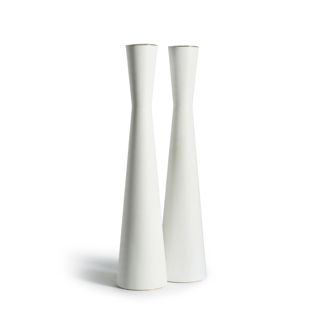 פמוט יחיד קטן לבן, עשוי מקוריאן ומפליז מצופה זהב 24 קראט.