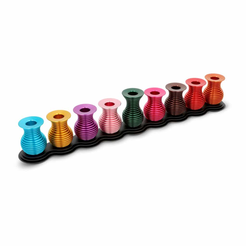 A designed menorah that can be taken with you wherever you go on holiday. A modern menorah that opens and reveals the holes for the rest of the candles. On the menorah is a blessing made with an innovative laser marking technique. The product is coated with the highest quality anodize and comes in a luxury gift package with the designer's logo. The entire production process is made in Israel.